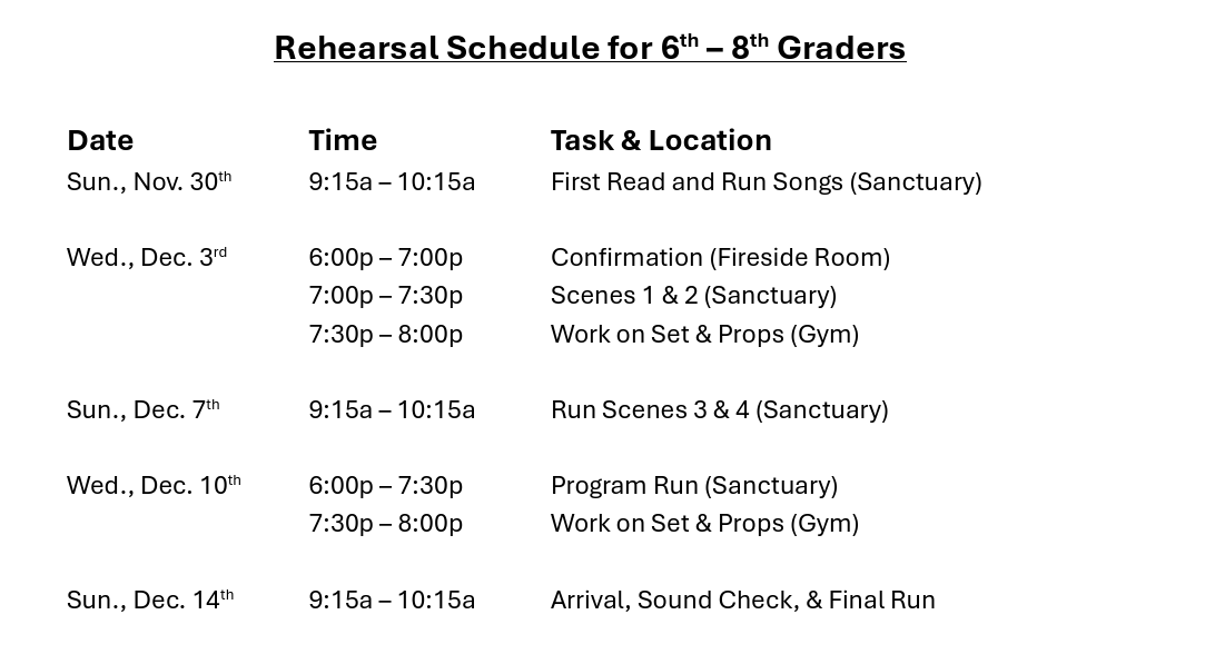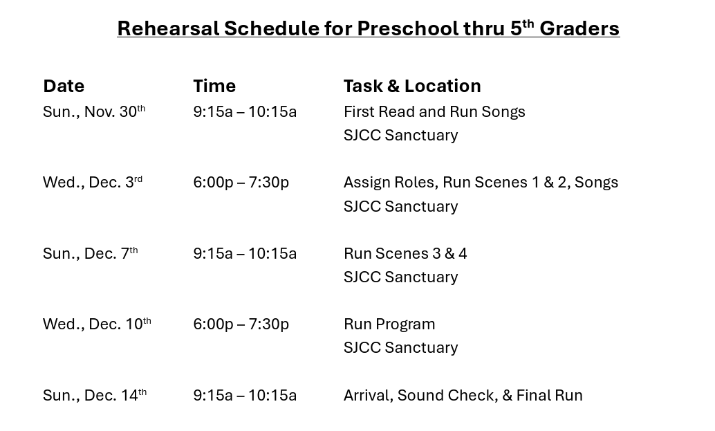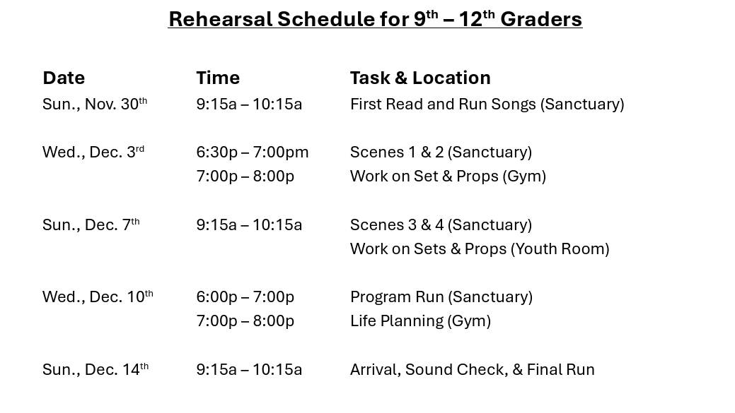 Please fill out the form below so that we can better plan for this year's Children's Christmas Program, which is scheduled for Sunday, December 14th during our 10:30am service of worship.